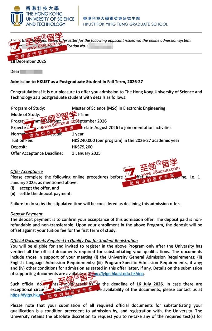 录取结果:香港科技大学,EE硕士录取